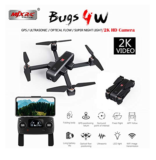 PinPle MJX B4W Drone, B4W 5G WiFi FPV Camera Drone, GPS RC Quadcopter, Full HD 2K Video Record, 2 Batteries, bring more happy for you! Excellent performanceIn addition to the necessary drone functional modes, B4W drone also has special modes of optical flow positioning, 2K Full HD 5G Wi-Fi camera...