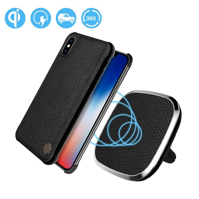 Package: Qi wireless charger Pad + Leather Magnetic Receiver Case For iPhone X